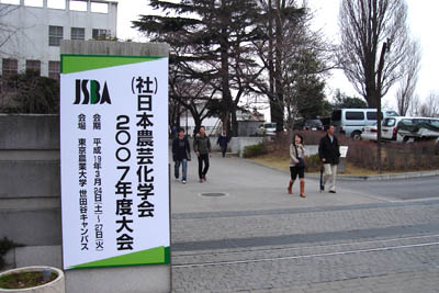日本農芸化学会2007年度大会は、本年3月24日(土)から27日(火)までの4日間、東京農業大学世田谷キャンパスにおいて開催された。大会参加者総数は5,183名(前回京都で開催された2006年度大会は5,495名)で、一般講演数2,323件(前回2,495件)であった。