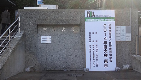 日本農芸化学会2014年度大会(実行委員長 正木春彦 東京大学大学院農学生命科学研究科教授)は、2014年3月27(木)から30(日)までの4日間、京王プラザホテルおよび明治大学生田キャンパスを会場として開催された。明治大学生田キャンパスは、東京からは多摩川を渡った神奈川県川崎市の丘陵地にある緑豊かなキャンパスで、農学部と理工学部を有する。明治大学で日本農芸化学会大会を開催するのは初めてのことであったが、明治大学を挙げた協力体制のもと両学部のほぼすべての教室ならびに設備を使わせていただけることとなり、一般講演をはじめとするすべての行事を開催することができた。明治大学には、厚く御礼を申し上げる。