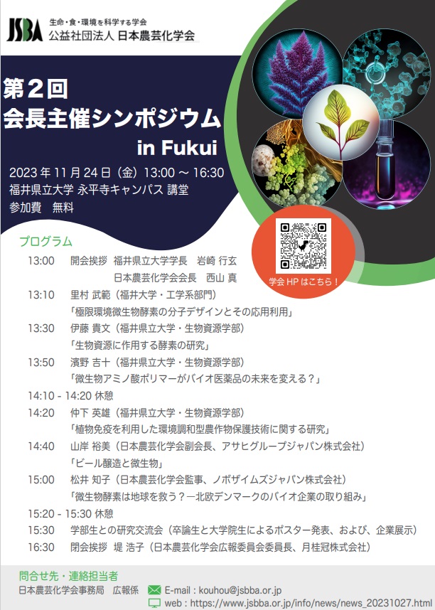 【2023/11/24(金)開催】日本農芸化学会「第2回会長主催シンポジウム in Fukui」