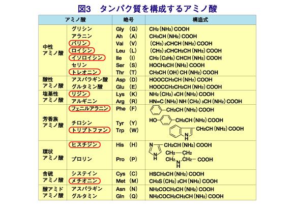 多くの生物は、栄養(食事、餌、培地など)として体内に取り入れたタンパク質などを分解し、それをもとに必要なアミノ酸を再合成して利用しています。ところが生物によっては、ある種のアミノ酸を再合成することができず、すべて外部から取り入れる必要がある場合があります。このように、自分自身では合成できないアミノ酸のことを「必須アミノ酸」と呼びます。必須アミノ酸の種類は生物種によりさまざまです。人間における必須アミノ酸にはバリン、ロイシン、イソロイシン、トレオニン、リジン、フェニルアラニン、トリプトファン、ヒスチジン、メチオニンがあります。