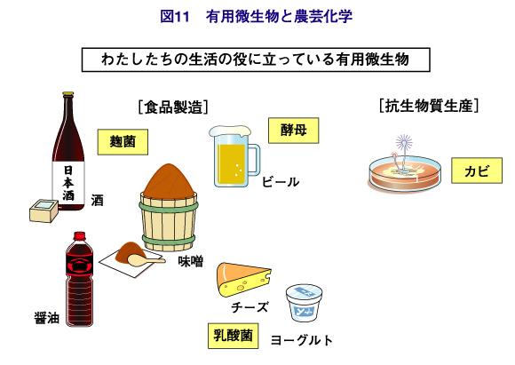 日本酒や味噌や醤油などの発酵に不可欠の麹(こうじ)菌、ビール醸造に不可欠の酵母菌、ヨーグルトやチーズ製造に不可欠の乳酸菌などは、わたしたちの食生活になくてはならない存在です。これらの研究には、多くの農芸化学分野の研究者の働きがありました。また、感染症からわたしたちを救う多くの抗生物質の研究や微生物農薬などの研究、最近では、遺伝子工学の手法で大腸菌、酵母やカビに有用な成分をつくらせる研究など、今後の微生物研究の進展に農芸化学分野の可能性は無限にあるといえるでしょう。