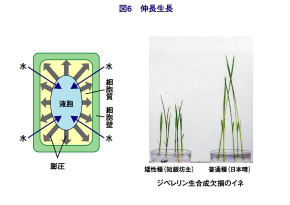 植物の生長を特徴付けるものに、伸長生長があります。「伸長生長」は温度や光など、さまざまな環境条件に左右されますが、植物ホルモンの重要性が明らかになっています。たとえば、ジベレリン、ブラシノステロイド、オーキシンなど、伸長生長を促進するものと、アブシジン酸、エチレン、サイトカイニンのように抑制するものがあります。