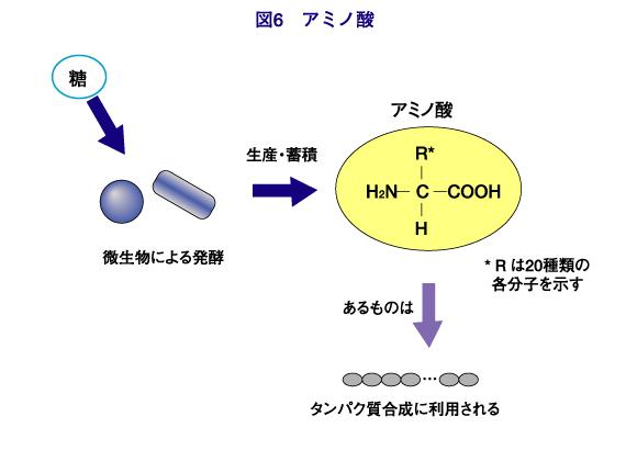 食肉やチーズが熟成により美味しくなるのは、微生物や酵素の働きで遊離の「アミノ酸」が増加するからです。旨味を示す代表的なアミノ酸のグルタミン酸は、日本の研究者(東京大学・池田菊苗博士)が昆布から見つけたものです。ヒトとは異なり、微生物は20種類全てのアミノ酸を自分で合成することができます。この能力を利用して、サトウキビからの糖蜜を糖源として、微生物により各種のアミノ酸をアミノ酸発酵により工業的に製造することができます。たとえば、グルタミン酸発酵ではコリネ型細菌(Corynebacterium glutamicumなど)を利用します。
