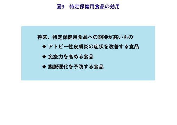 「アトピー性皮膚炎の症状を改善する食品」や「免疫力を高める食品」などはすでに開発が進み、特定保健用食品の候補と考えられる食品ですが、医薬品との機能範囲の解釈や薬事法絡みの表示表現の問題、日本人を用いたヒト試験での有効性、安全性などが不十分であるなどの理由で、まだ特定保健用食品として許可されていません。今後の開発、許可が待たれます。