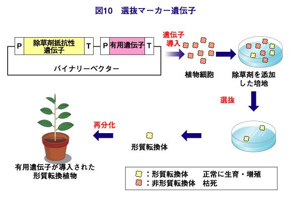 遺伝子組換えの際に、目的遺伝子が組み込まれたかどうかを確認する目印として用いられる遺伝子を「選抜マーカー遺伝子」といいます。