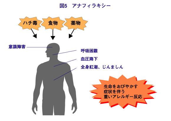 「アナフィラキシー」とは食物やハチ毒、薬物などが原因で起こる、生命を脅かす症状を伴う場合もある重いアレルギー反応をいいます。この症状ではとくに、免疫グロブリンE(IgE)の関与するアレルギー反応がかかわっています。