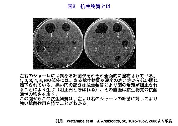 「抗生物質(antibiotics)」という言葉は、1945年にワックスマン(ストレプトマイシンの発見者)により提唱され、「微生物によってつくられ、微生物の発育を阻止する物質」が原義です。ペニシリン発見後、多くの微生物由来の病原菌を殺す薬剤(抗菌剤)が見いだされましたが、そのほかに抗真菌剤、抗ウイルス剤、抗腫瘍剤、免疫抑制剤や酵素阻害剤も見出され、それらも広い意味で、抗生物質と呼ばれるようになりました。このように、抗生物質の大部分は抗菌剤を意味します。
