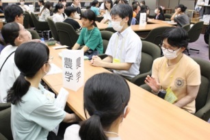 その後、「進路・キャリア相談カフェ」が開催された。このカフェは、農学、生物、化学など分野ごとにわかれたブースで、女子中高生が科学者や大学生と交流できる場であった。これまで科学者がどのような道を辿っていったのか、現在どのような研究を行っているのか、など生の声を直接聞ける場であり、どこのブースにも多数の参加がみられた。生徒が今後の将来像を描くために、貴重な時間であったと思う。中には、「数学が大好きでその道に進みたいが、将来仕事としてどのような道があるかわからず、進むべきか悩んでいる。」といった質問もあがった。その際、同じような経験をした科学者から、「好きなことに邁進することはとても良いと思う。ただ別の道として、数学を使って、農学、生物などを研究するという道もある。」といったアドバイスがなされた。生徒からは「視野がひらけた」といった感想が得られ、まさに違うバックグラウンドをもつ研究者が集まったために生まれた一言だと感じた。また、苦手科目の勉強法をテーマとしたブースでは、「国語が苦手です。どうやって勉強したらいいのでしょうか。」という質問があがった。それに対し、TAとして参加した大学生は「1日1回でも文章に触れる。短い時間でもいいから続けることが大事です。」と答えていた。今悩んでいることに対し、経験を踏まえた的確な答えだと思った。この他、「建築科に進学したいが、今回は該当するブースがなくて残念です。」といった感想も寄せられた。近年は、女子高生の理系分野への進学者が増えつつある。現在大学入試制度は、一般選抜型入試に加え、学校推薦型、総合選抜型入試など多様化している。さらには、入試に女子枠を設ける大学も増えている。そのため、女子高生の理系分野への進学者増加は、今後も続くと予想される。本イベントは上述したように、多様な団体・学協会の支援により開催されているが、このような生徒の声に応えられるよう、新たな団体・学協会の参加を期待したい。