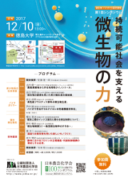 | ポスター | ![]() 微生物・バイオマス利用研究領域 第1回シンポジウム 「持続可能社会を支える微生物の力」ポスター(PDF) |