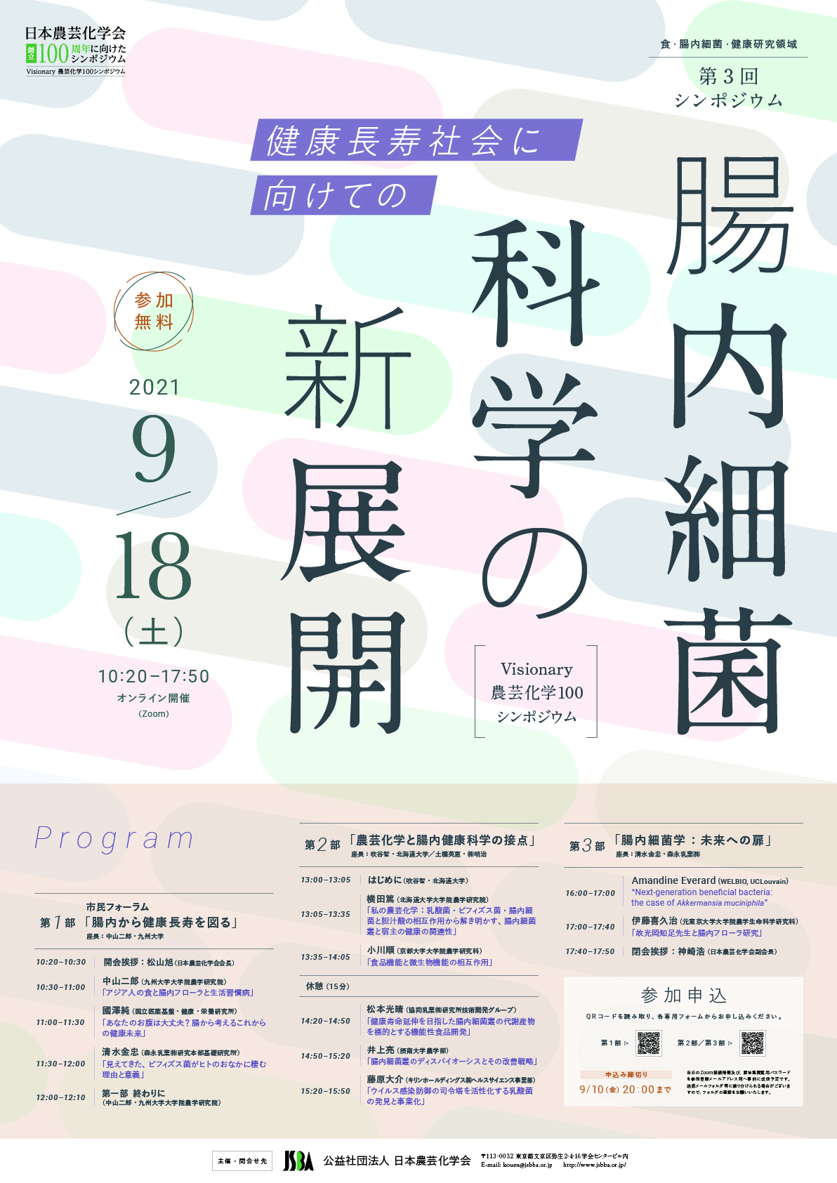 食・腸内細菌・健康研究領域 第3回シンポジウム「健康長寿社会に向けての腸内細菌科学の新展開」