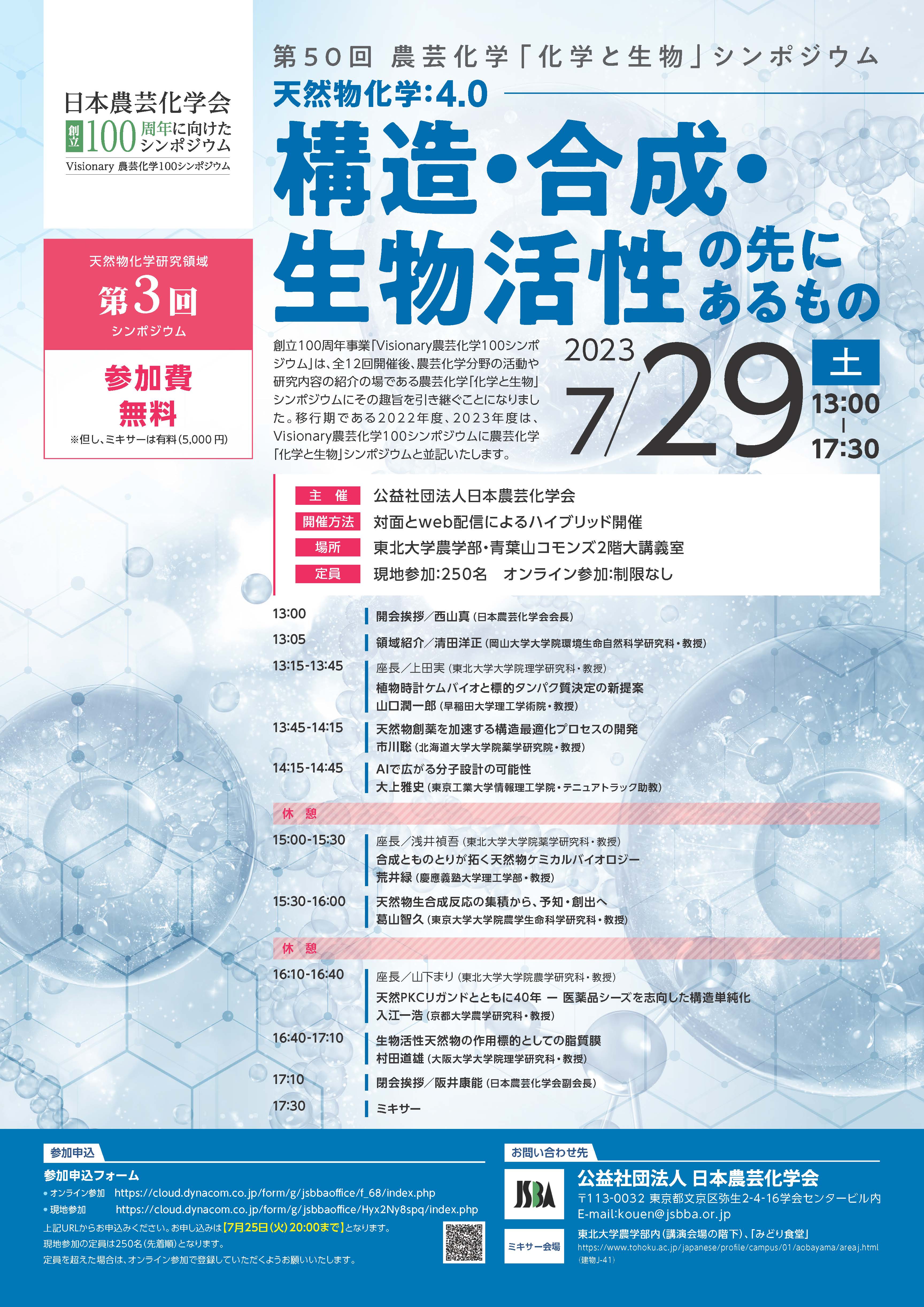 【2023/7/29(土)開催】 Visionary 農芸化学100 シンポジウム(第50回 農芸化学「化学と生物」シンポジウム)