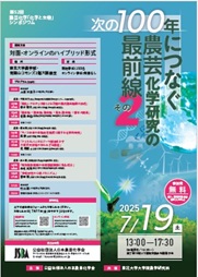 | ポスター | ![]() 第52回 農芸化学「化学と生物」シンポジウム 「次の100年につなぐ農芸化学研究の最前線 その2」ポスター(PDF) |