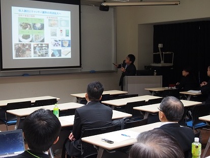 豊田先生からは、農薬に頼らない土壌病害対策方法の開発について、農薬を多用することの弊害を紹介していただいた上で、環境に負荷をかけない土壌妨害防除や減農薬のための生物診断などの取り組みを分かりやすく説明していただきました。