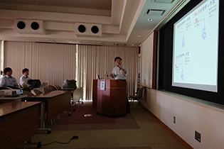 - 照屋俊明先生(琉球大)からは、シークヮーサーの搾りかすからノビレチンを効率的に抽出する製法を確立したこと、およびノビレチンにメラニン生成抑制効果があることについて、ご説明頂きました。続いて、島田邦男先生(琉球ボーテ株式会社)からは、本製法で抽出したノビレチンを利用した化粧品を琉球大の学生と連携しながら開発したことについてご紹介頂きました。大学での研究シーズをもとに、地域・産学連携を通じて商品販売まで進めた実例として興味深いご講演でした。