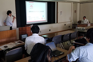 - さんわか代表の勝山陽平氏(東京大学大学院)より日本農芸化学会およびさんわかの活動について紹介させていただき、その後、さんわかメンバー4名(岸野重信氏(京都大学大学院)、若木学氏(農研機構)、高倉淳氏(味の素株式会社)、常田啓太氏(サッポロホールディングス株式会社))より各々が所属する組織や研究内容を紹介させていただきました。産学官の多様な分野の講演を通して、日本農芸化学会やさんわかについて興味を持っていただく良い機会となりました。