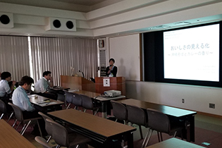 - 望月智代先生(沖縄県工業技術センター)からは、沖縄で販売されている「沖縄そば」および「カレー」について、県外・海外で販売される「そば」および「カレー」の製品サンプル群と主成分分析や官能評価に基づいた比較を行うことを通じて、地域における志向性のマップ化を行った結果と考察について報告頂きました。本解析結果を参考に、沖縄食品を海外展開するための改良や、新たな商品開発のアイデアに活用できる可能性について語って頂きました。