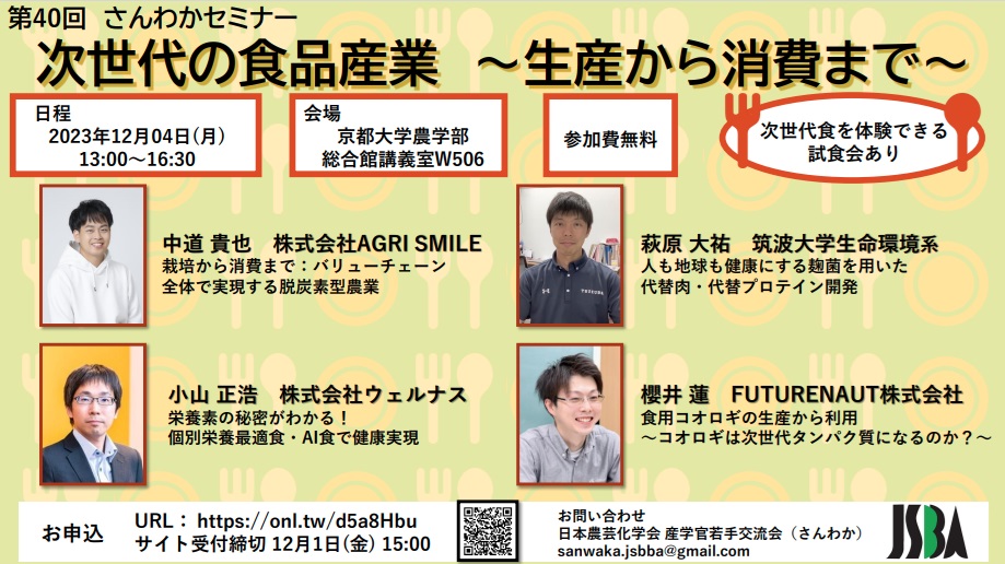 | 主催 | 日本農芸化学会 産学官若手交流会(さんわか) |